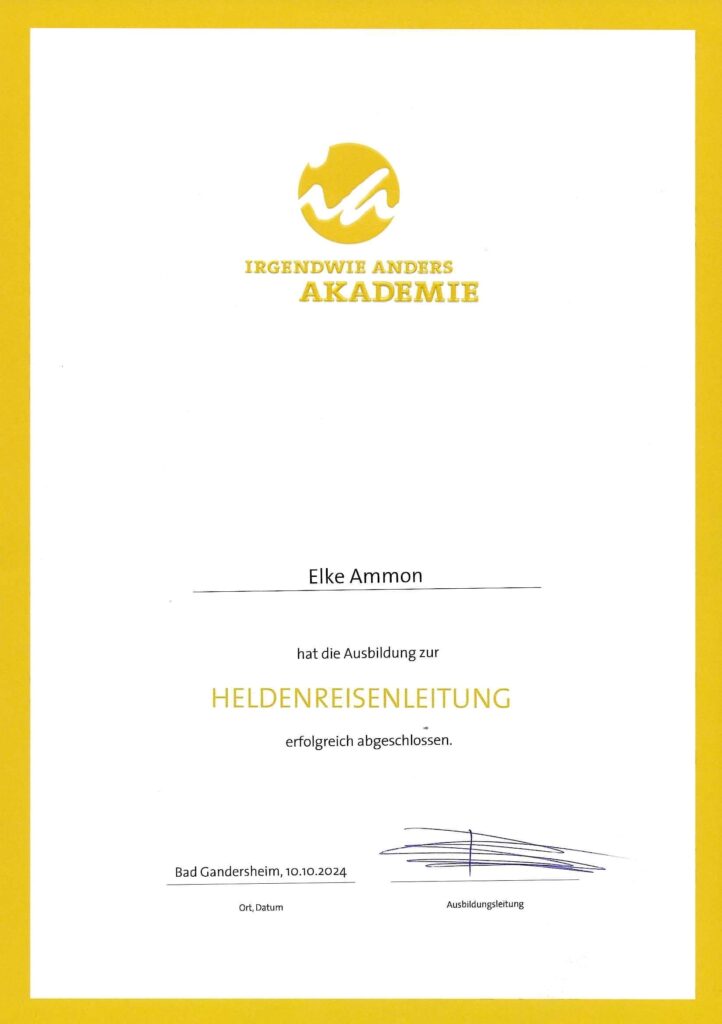 42 Fortbildungstage mit 340 Stunden inkl. Leitung von Heldenreisen
