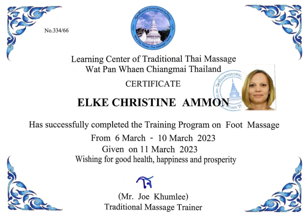 Thai Foot Massage Training in Chiang Mai, Thailand, März 2023