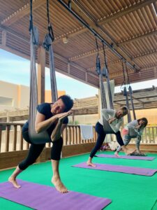 Davon 3 Einheiten Aerial Yoga à 90 Minuten in Kleingruppen à max. 7 Teilnehmer