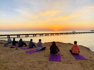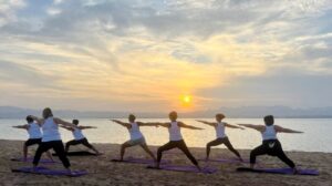 Yoga bei Sonnenaufgang am Strand ist ein Highlight in der Somabay