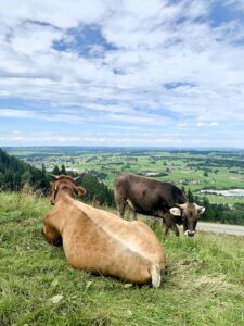 Seit meiner Kindheit ist das Allgäu für mich ein Herzensort, denn in der lieblichen hügeligen Gegend mit Blick auf die Alpen geht mir förmlich das Herz auf. Daher freue ich mich besonders, dass ich euch jetzt in diese zauberhafte Umgebung mitnehmen kann :).